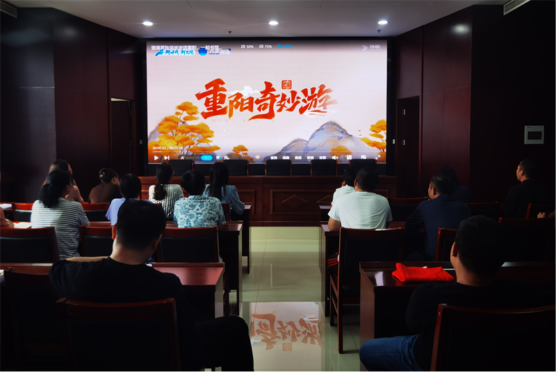 一是集團公司各部室干部職工一同觀看了《重陽奇妙游》。了解重陽節的由來、欣賞了重陽的優秀佳作。故事通過“山腳·日月同輝”“山間·該走哪條路呢”“山腰·向前看”“山谷·我的心開滿鮮花”“山脊-山頂·心有大風景”五話故事,串聯起主人公一路“登高”,賞國色之秋、登高山之巔。